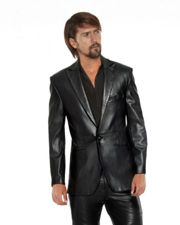 Mens Black Lambskin Leather Jacket with Buttoned Throat Tab