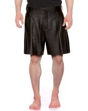 Embrace classy and smart look with these Mens black leather shorts. These shorts have been designed such that you can easily add them in your regular wear. They can lend you optimum comfort throughout the day. Pair these shorts with T-shirt and roam around with absolute ease. Pleated front panels and two side pockets add to the style of these leather shorts.